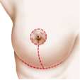 • a regular circular scar around the areola.