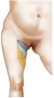 A deep fixation to the aponeurotic ligament is performed, on the upper part of the inner thigh in order to maintain sagging correction and the scar and to preserve the sustainability of a normal and harmonious anatomy.